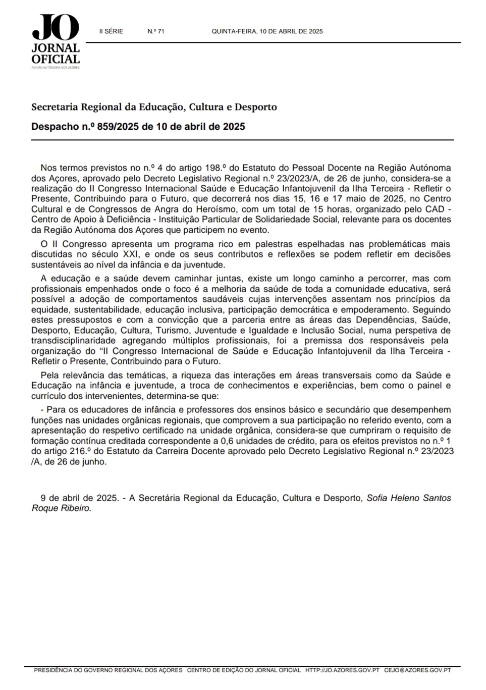 © 2024 II Congresso Internacional de Saúde e Educação Infantojuvenil da Ilha Terceira | CAD - Centro de Apoio à Deficiência - Instituição Particular de Solidariedade Social | NIF 512023492